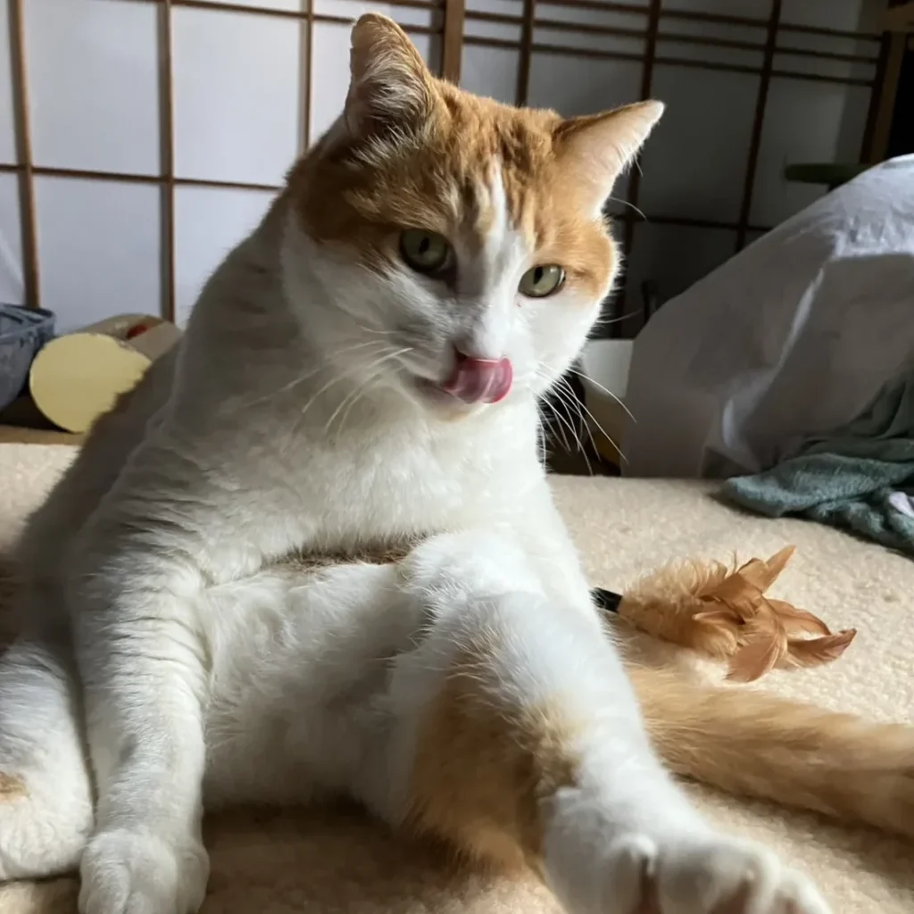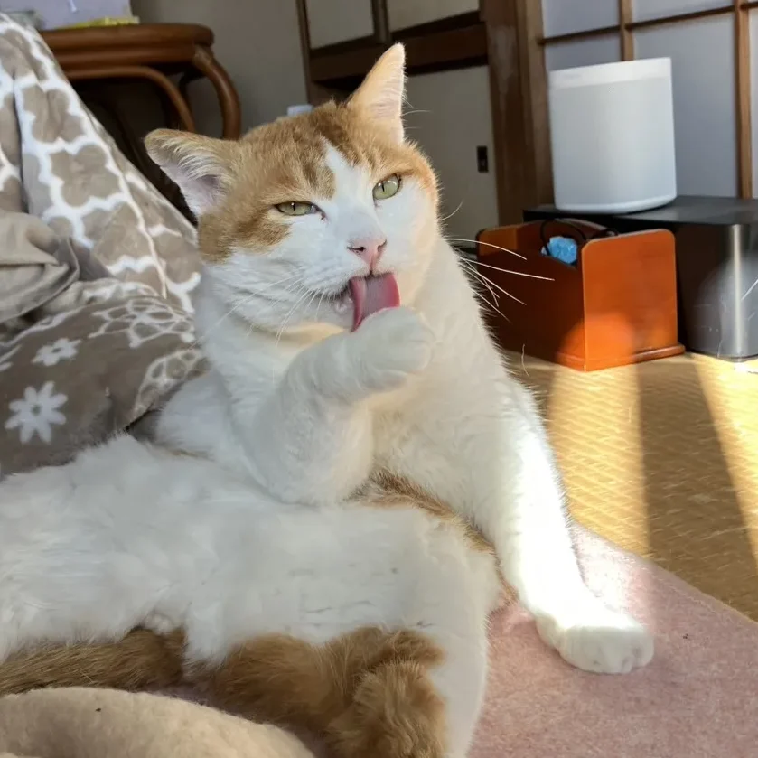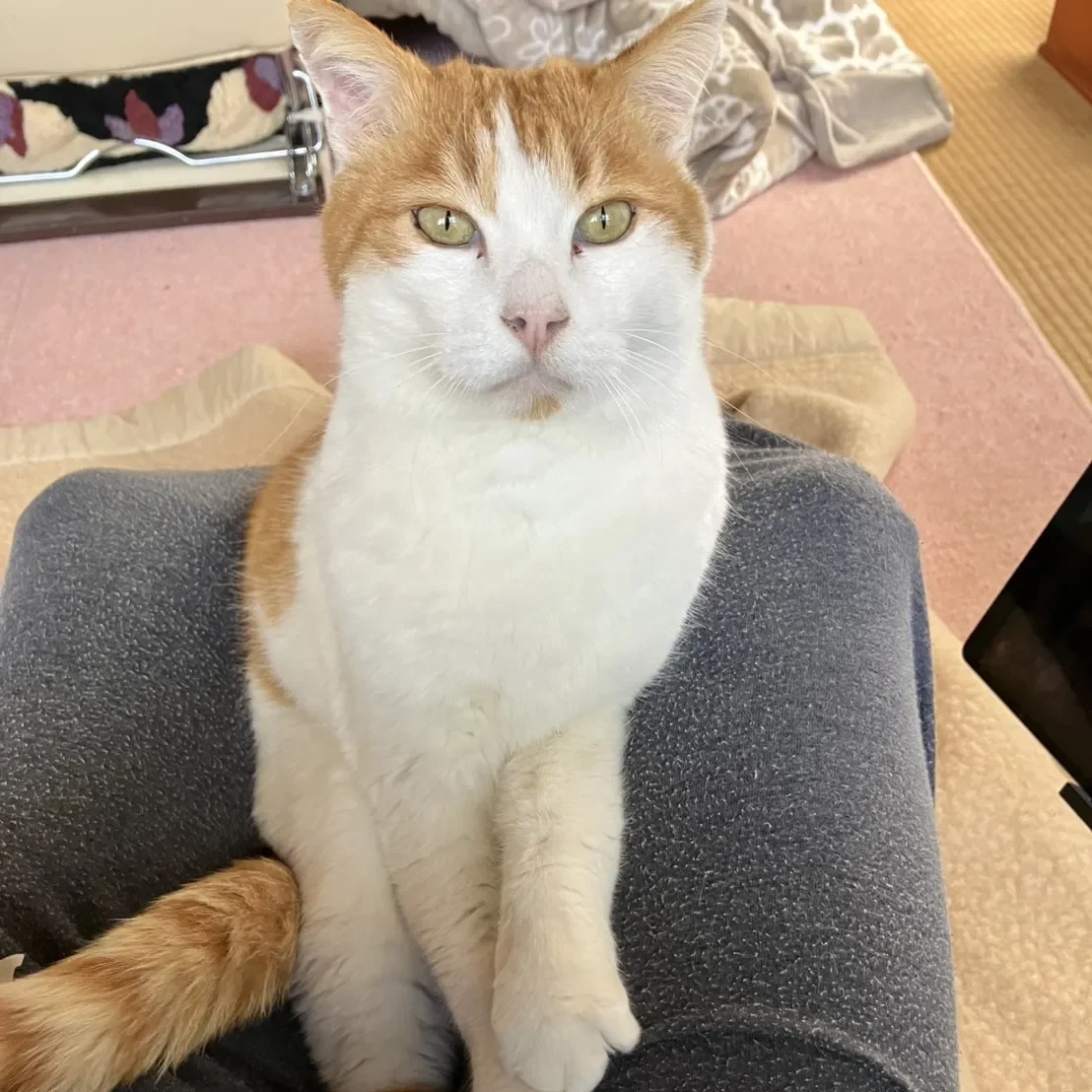 預かりボランティアさんのご自宅では重い襖も空けてしまう力持ち!猫はあまり好きではないようですが、人に対しては少し人見知りはあるものの甘えん坊でお膝が大好きです♪